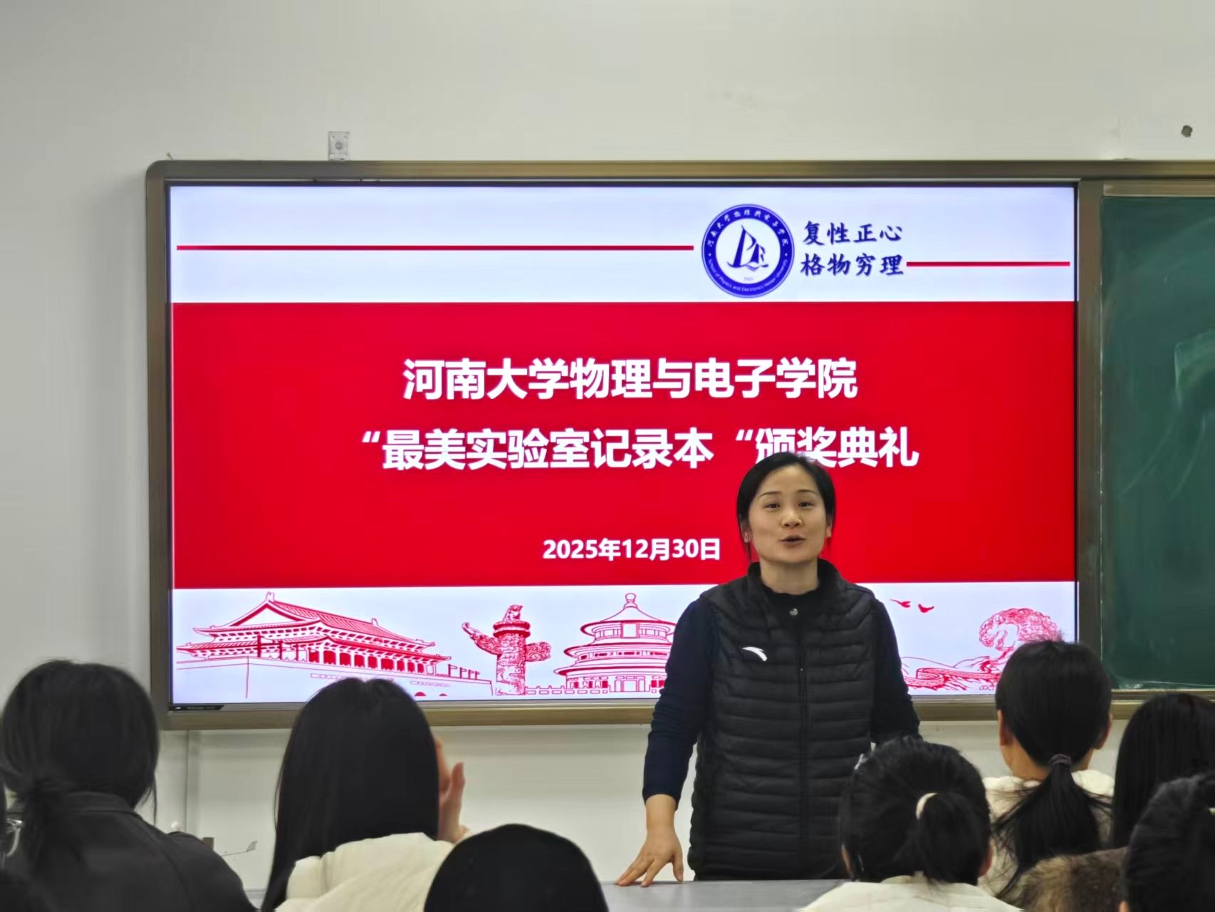 12月30日,主题颁奖仪式在学院B410教室举行。学院科研与研究生教育办公室主任郁彩艳,研究生辅导员周焕、王翠苹老师出席仪式并为获奖学子颁奖:刘怡宁等3人荣获一等奖,石欣欣等6人获二等奖,李紫诺等9人获三等奖。颁奖结束后,郁彩艳老师与现场师生分享了自己的感悟,她谈到,每一张科研照片都是对真理的执着追求,每一本实验记录都是科研路上的坚实脚印,这些宝贵的积累不仅是个人成长的见证,更是学院学科发展的动力源泉。她勉励全体研究生,要以获奖同学为榜样,保持对科研的热爱与坚守,在探索中锤炼本领,在钻研中增长才干。
