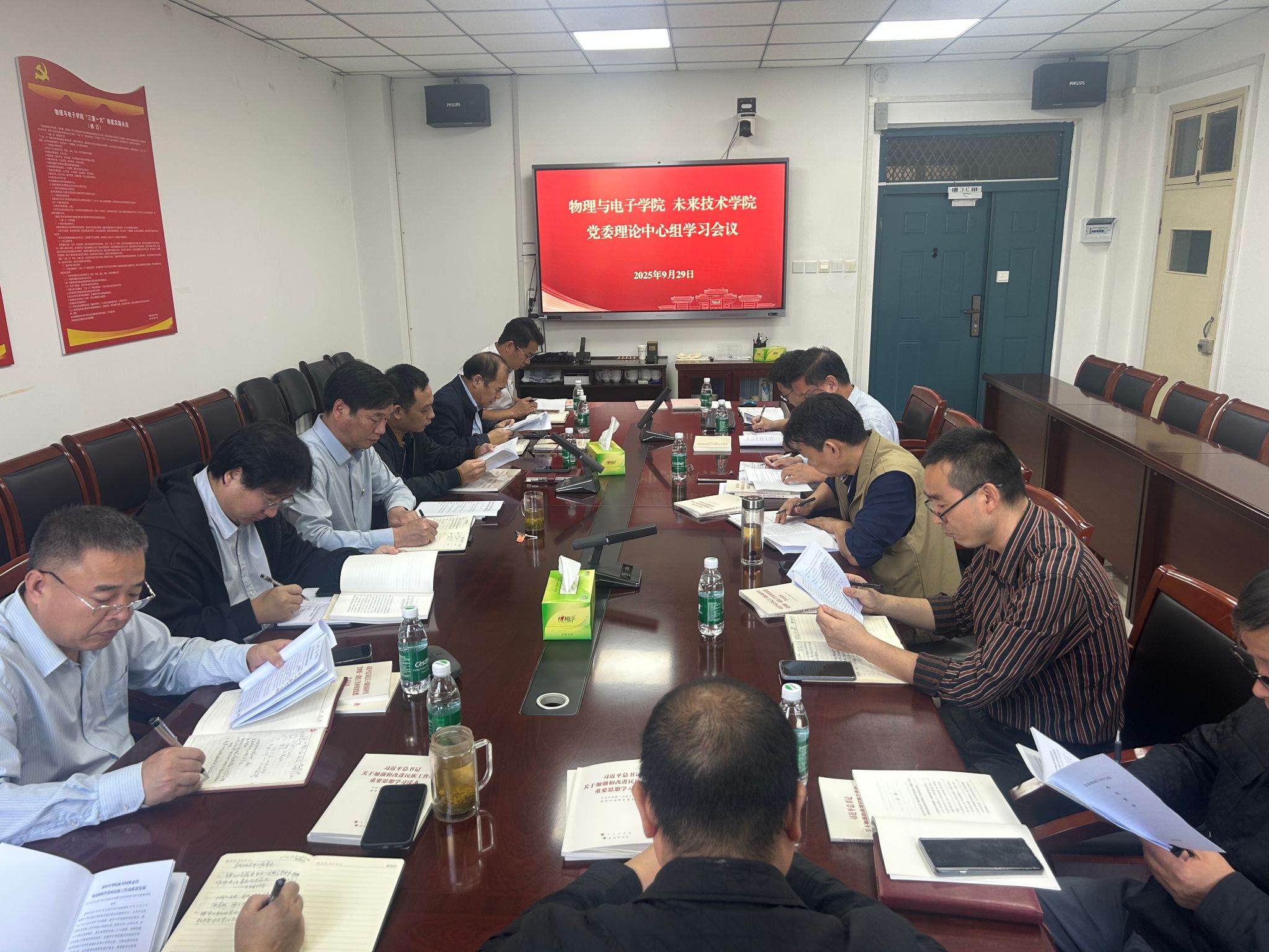 9月29日上午,物理与电子学院、未来技术学院(量子信息)党委理论学习中心组第十次集体学习会议在学院A311会议室召开。两个学院党委委员、领导班子成员、组织员及部分党员代表参加了本次学习。会议由学院党委书记张慧主持。