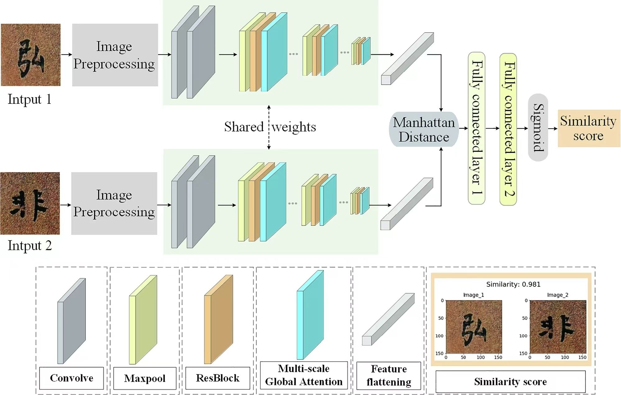 唐代长沙铜官窑的瓷器是诗瓷结合的典范,针对唐代长沙窑陶瓷诗句的书手识别这一长期未解难题,研究团队创新性地提出双路径多尺度全局注意力(MSGA)模型,通过多尺度特征融合与全局上下文建模,显著增强了模型对复杂书法图像的局部细节与全局结构特征的感知能力。实验结果表明,该模型识别精度达到97.85%,显著优于非局部注意力基线模型的93.75%。将模型应用于博物馆藏品分析后,成功发现分别收藏于两家不同文博机构的陶瓷器的诗句,其书法风格高度相似,出自同一书手,这一发现此前未被传统研究方法所识别。