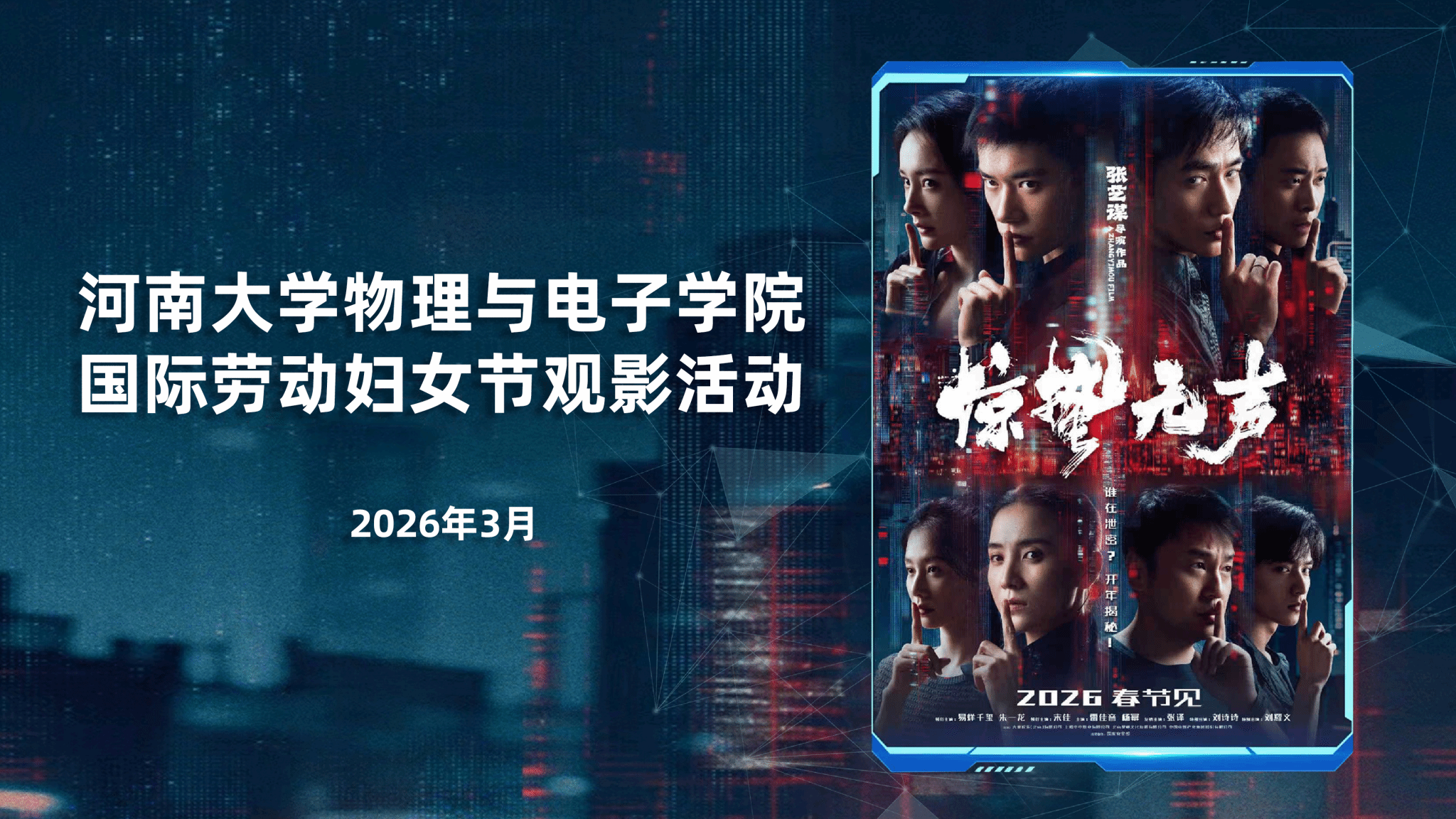 3月19日下午,学院组织全院教工前往中影星光好莱坞国际影城,开展“三八”国际妇女节观影活动,集体观看当代国家安全题材影片《惊蛰无声》。观影结束后,大家纷纷表示,此次观影增强了家国情怀与责任意识,今后将立足本职岗位,以实际行动践行巾帼担当,为国家发展与学院建设贡献力量。