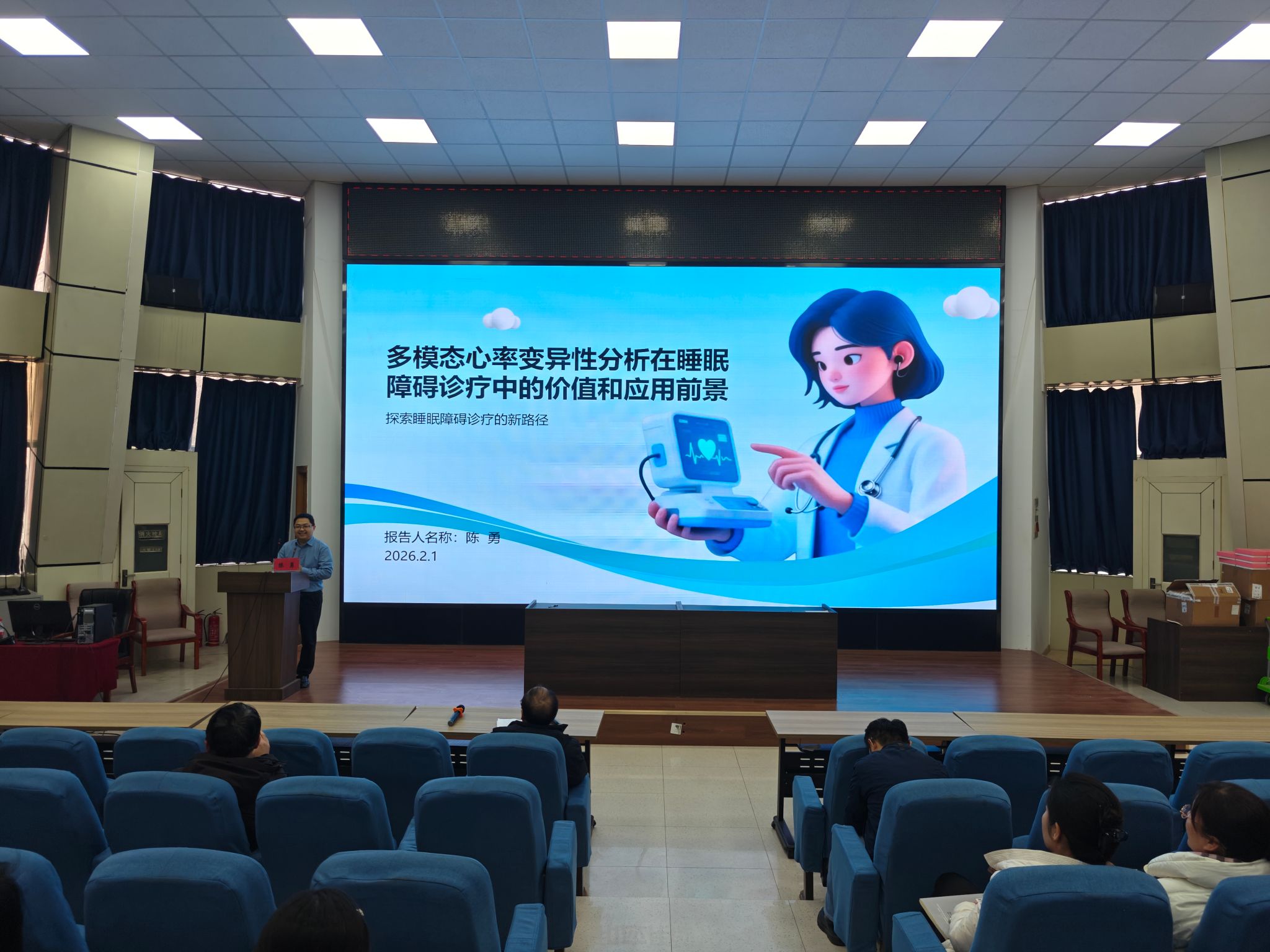 3月12日下午3:30,学院特邀河南大学第一附属医院专家团队,开展健康科普讲座与公益义诊活动。科普讲座环节,消化病院院长杨文义以《浅谈消化道早期癌的防治》为题,帮助教工树立消化道早期癌“早发现、早诊断、早治疗”的健康理念;睡眠医学科主任陈勇围绕《多模态心率变异性分析在睡眠障碍诊疗中的价值和应用前景》为题,为受睡眠困扰的教工提供了科学指导。
