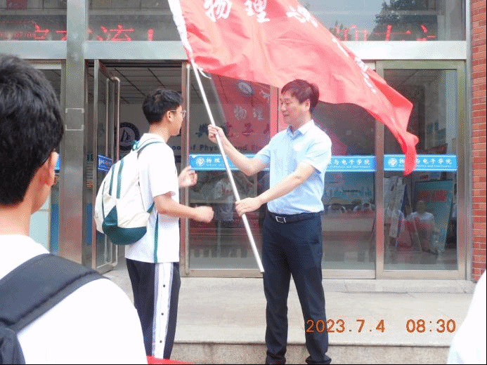 为深入学习宣传贯彻习近平新时代中国特色社会主义思想和党的二十大精神,引导和帮助广大青年学生在与现实相结合的“大思政课”中“受教育、长才干、作贡献”,引领青年大学生立志做有理想、敢担当、能吃苦、肯奋斗的新时代好青年,7月4日上午,我院2023年暑期“三下乡”社会实践活动出征仪式在物理与电子学院A楼前隆重举行。学院党委书记张慧、党委副书记刘寒冰、辅导员张婷等出席本次出征仪式,出征仪式由党委副书记刘寒冰主持。
