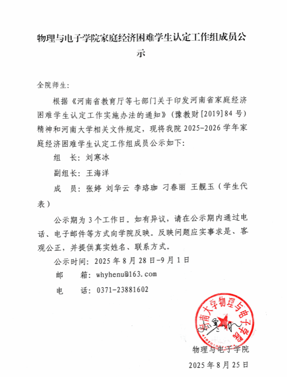 1.物理与电子学院家庭经济困难认定工作组及评议小组成员名单