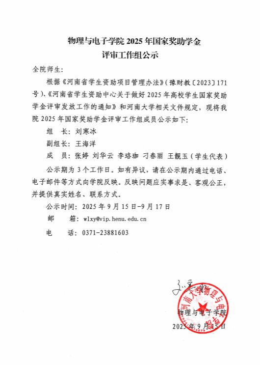 1.物理与电子学院国家奖(助)学金评审工作组及评议小组成员名单
